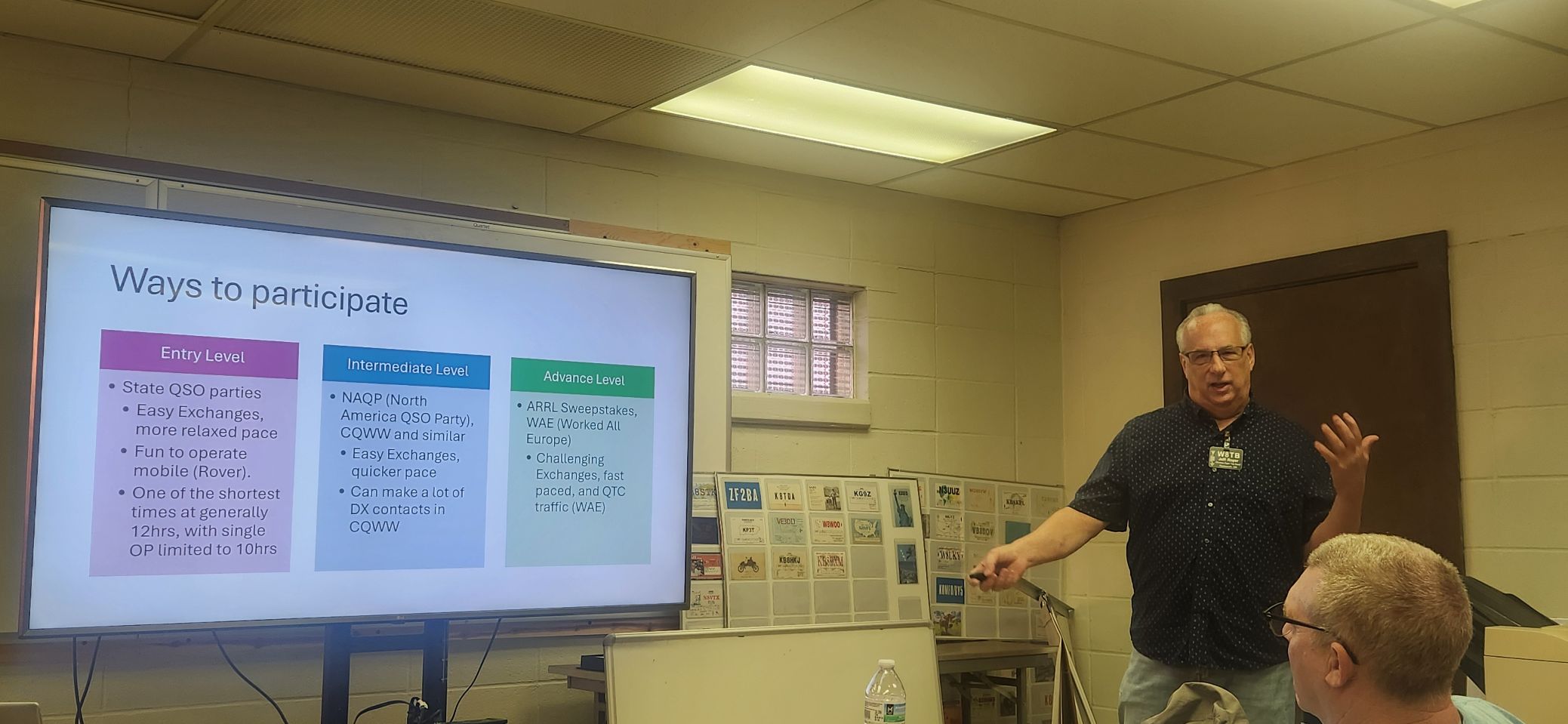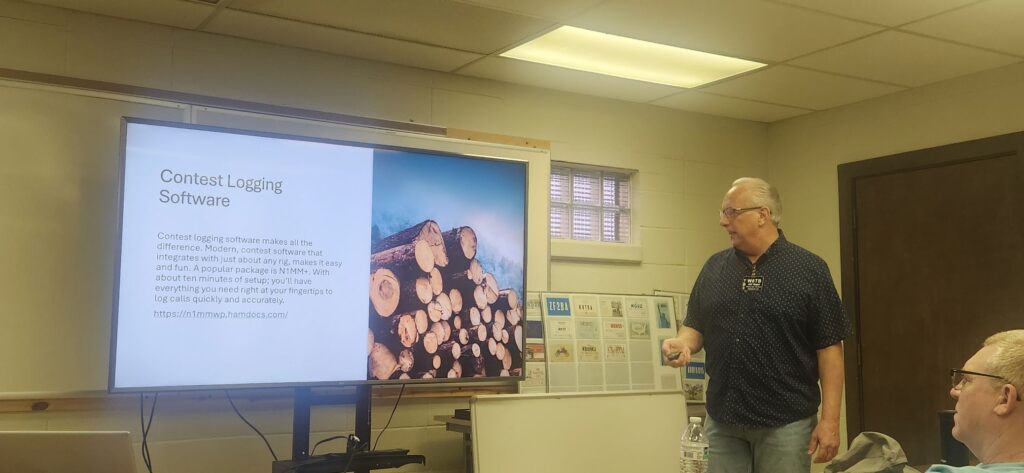 He explained the many aspects of Ham Radio contesting, including operation, useful internet